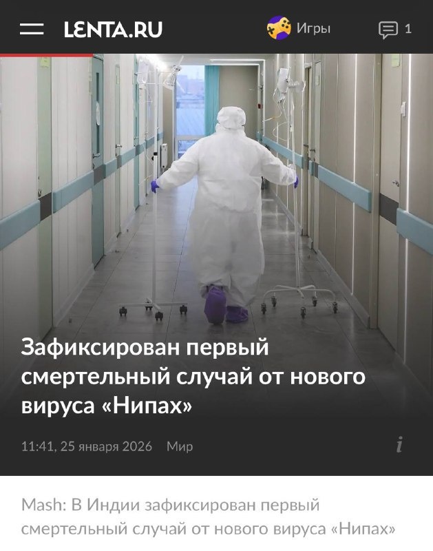 Что уже известно к этому часу: 🔴 Есть погибшие: официально подтверждена смерть. Всего зафиксировано пять заражений, среди них — медики. 🔴 Власти срочно изолировали около сотни человек, в больницах Барасата и Калькутты включили режим ЧС. 🔴 Симптомы стартуют как банальный грипп, но через 24–48 часов болезнь бьёт по мозгу — энцефалит, кома и смертность до жутких 75%. 🔴 Тревожный момент: в регионе находятся тысячи россиян, а прямые рейсы с Индией продолжают летать. Роспотребнадзор уже готовит контроль и тесты в аэропортах. 🔴 Вакцины пока НЕТ — разработки только начинаются, до массового применения ещё очень далеко. Звучит как плохой сценарий, но игнорировать точно не стоит.... Подробнее: https://hard-tm.su/threads/142688/ 🕹HARD-TM — Подписаться