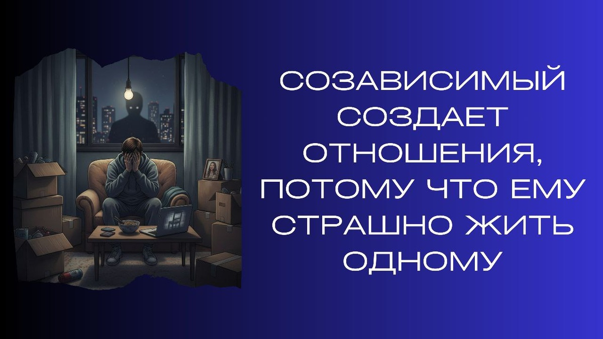 У многих созависимых имеется паническое расстройство из-за одиночества, страха жить самостоятельно и остаться одному, и они вступают в первые попавшиеся отношения, чтобы избежать своих страхов.