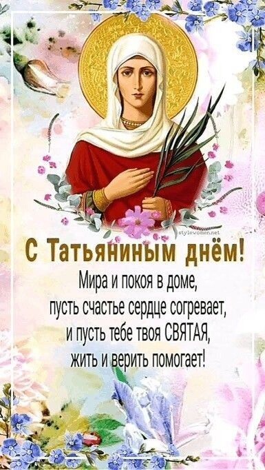 С Татьяниным Днём всех Татьян, Тань и Танюшек!!! С праздником всех обладательниц этого прекрасного русского имени. Это и в нашей семье праздник. Моя бабушка по маминой линии - Татьяна. Родилась в семье староверского священника в деревне ВанькОвой - центре старообрядчества на севере Пермского края. Замуж вышла за седьмого жениха Семёна, сватовшегося к ней. У Семёна и Татьяны было одиннадцать детей, из которых пятеро умерли в нежном возрасте. Два сына Иван и Гурьян погибли в Великой Отечественной войне. Из четырёх дочерей Евгении, Ульяны, Анны моя мама Людмила была самой младшей. В честь бабушки Татьяны назвали мою двоюродную сестру Таню. Таня имеет норов суровый, но справедливый. А ещё 25-е января - это День студента. Этот праздник близок всем и каждому. Все мы когда-то были студентами. В этот день будучи студентами распевали Гаудеамус и распивали пиво и медовуху. Вот такой замечательный праздник сегодня! Жаль, что в связи с больничным не могу себе позволить хотя бы бокал медовухи.