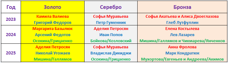 "Фигурнокатательный" сезон 25/26 продолжается. Главным событием ближайших выходных (31 января - 1 февраля) станет четвертый по счету Прыжковый турнир, который 3 года назад вышел за рамки Кубка Первого канала и превратился в дополнительный Чемпионат России. Вспомним победителей и призеров трех предыдущих Чемпионатов России по прыжкам.