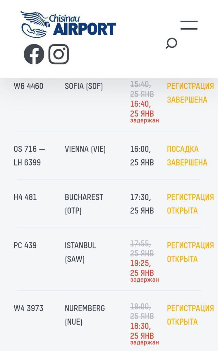 ✈️ Из-за погодных условий в аэропорту Кишинева откладываются рейсы на вылет