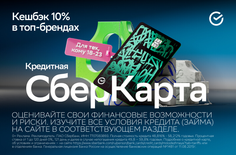 18+ Реклама. Рекламодатель: ПАО Сбербанк. ИНН 7707083893. Генеральная лицензия Банка России на осуществление банковских операций №1481 от 11.08.2015 г. erid: 2VtzqxAoeRR Полная стоимость кредита 48,816% - 58,212% годовых. Процентная ставка (годовых) от 1 до 120 дней 0%, 121 день и далее в слу