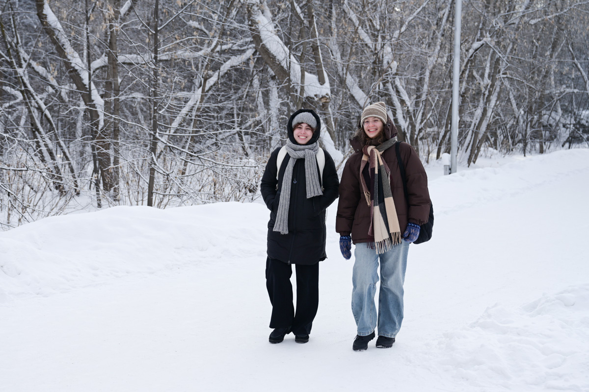 Татьянин день. Утро выпало хрустальное, звонкое. Снег, пушистый и нетронутый, лёг на город, как на опушку волшебного леса. А в центре — у памятника Святой Татьяне — тишина стояла особая, почти звенящая. Святая смотрела на спящие под снегом университетские корпуса — словно благословляла этот день, его суету и радость.