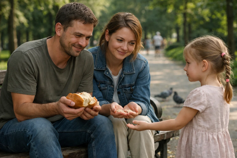 У Ларисы была маленькая традиция, о которой Василий знал и которую поддерживал, — она любила кормить городских птиц. Это занятие успокаивало её. Поэтому Василий всегда заранее покупал свежую выпечку. Он видел, как меняется её лицо, когда она крошит булку голубям — становится светлым, умиротворенным.