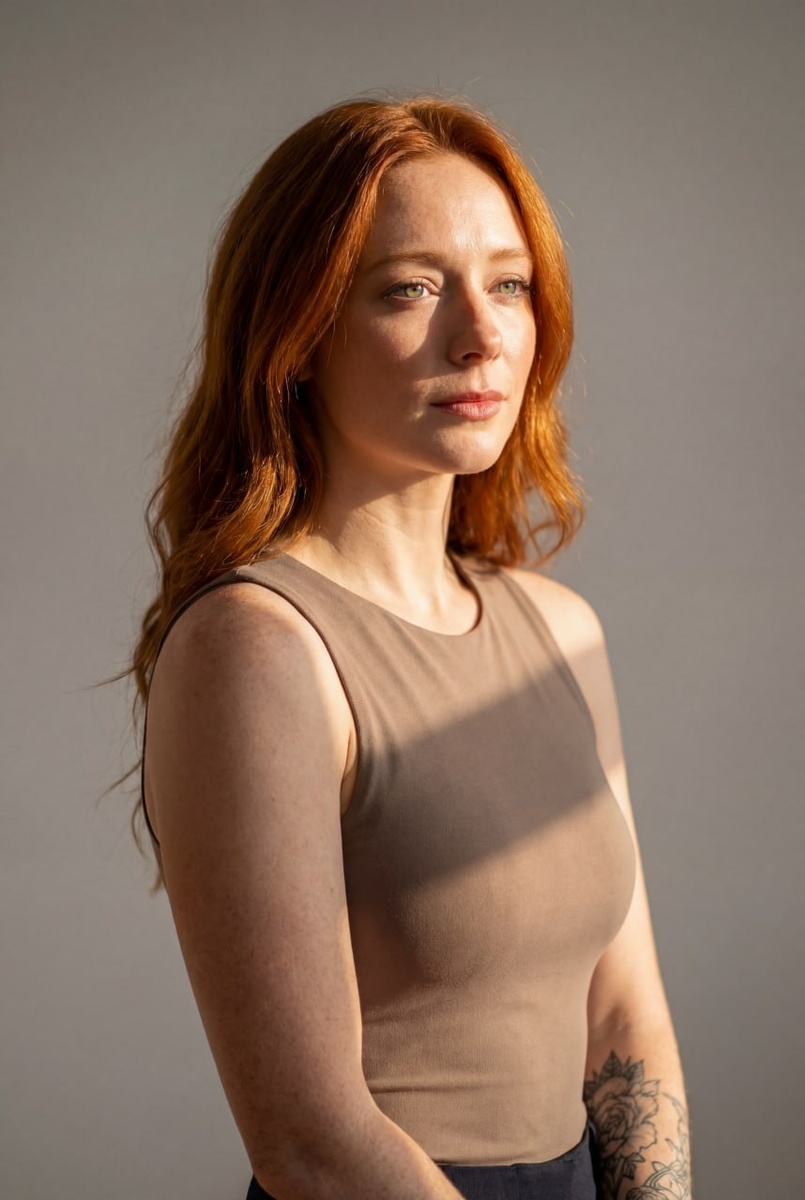 — Переходи в бот - https://t.me/picture_aibot?start=-nano (PRO версия работает лучше) — Загружай фото и вставляй промт одним сообщением 🔥 Подари другу одну генерацию, просто отправь ему этот пост, если он ранее не использовал бот. Промт: строго сохранить лицо, кожу, возраст, черты и пропорции 1:1 без любых изменений. В тёмно-бежевом топе без рукавов стоит у нейтральной светло-серой стены; левая часть лица в тени, правая освещена солнечным лучом, создавая контраст теней; ракурс портретный, в 3/4, кадр — от пояса вверх; локация — интерьер студии/комнаты, фон простой; естественное боковое освещение слева под углом ~45°; глубина резкости малая; фокусное расстояние 50 мм; стиль — фотореализм; кадрирование — портрет; атмосфера спокойная, тёплый тон света; детали кожи естественные.