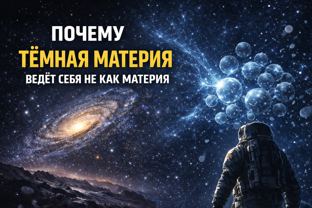 Если бы тёмная материя вела себя как обычная, физикам было бы гораздо проще. Мы бы уже давно знали, из чего она состоит. Но проблема в том, что она упрямо не хочет подчиняться привычным правилам. Она не светится, не поглощает свет, не нагревается, не образует атомов и почти не взаимодействует с веществом. При этом именно она удерживает галактики от распада. И здесь начинается самое интересное. Впервые о ней заговорили не из-за теорий, а из-за наблюдений. В 1930-х годах астрономы заметили странность - галактики вращаются слишком быстро. По всем законам физики они должны были разлететься, если учитывать только видимую массу звёзд и газа. Но они не разлетняются. Это означало одно - в галактиках есть что-то ещё. Невидимая масса, создающая дополнительную гравитацию. Так и появилось понятие тёмной материи. Важно - её не придумали «для красоты теории». Она возникла как вынужденное объяснение реальных измерений. Обычная материя состоит из частиц, которые активно взаимодействуют друг с другом.