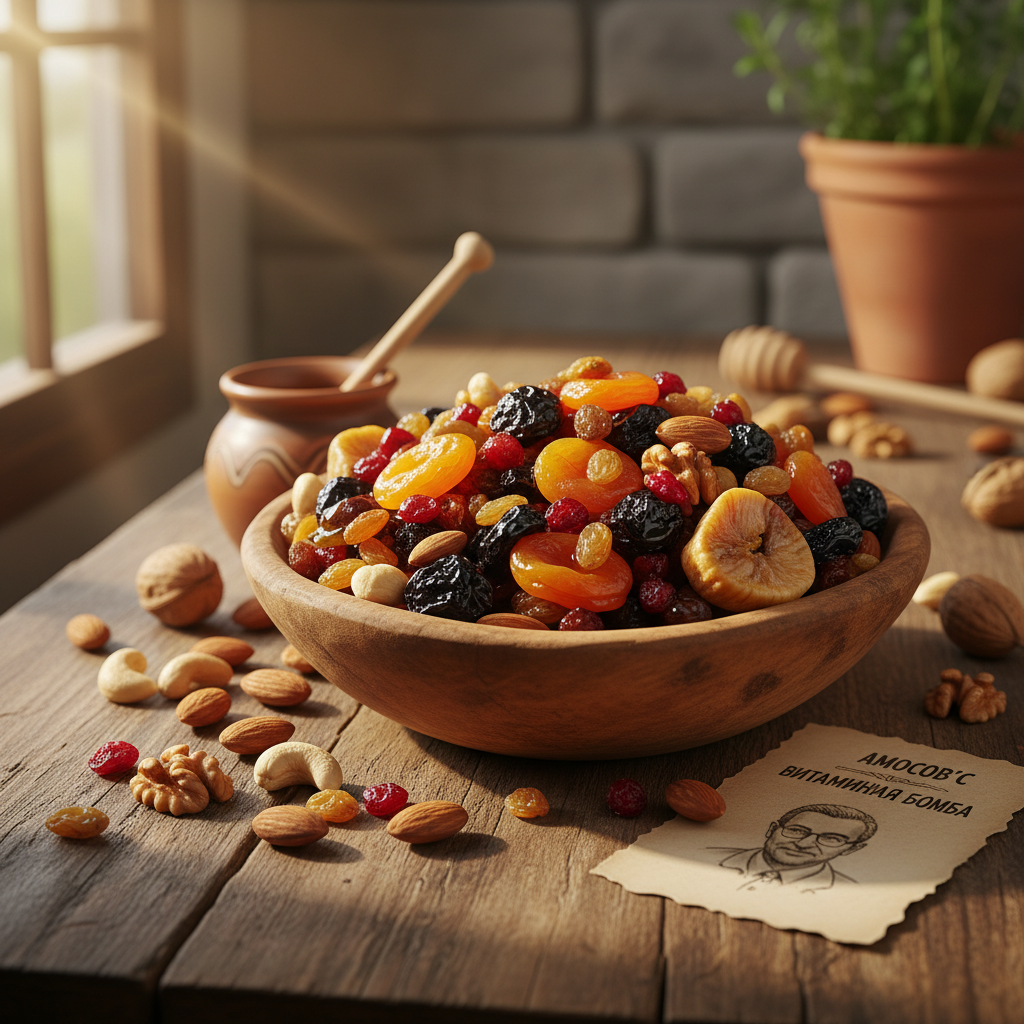 В современной жизни активных ритмов и стрессов тема укрепления иммунитета выходит на передний план. Особое место среди натуральных средств занимает витаминная «бомба» из сухофруктов — известный народный рецепт, основанный на научных рекомендациях советского профессора-кардиохирурга Николая Амосова. Его простой, но эффективный настой из сухофруктов, орехов и мёда быстро получил народное признание и не сдал позиций с годами.