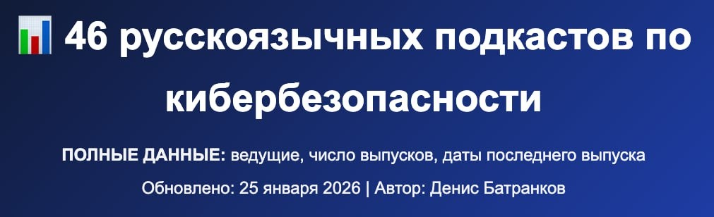 Начал собирать список подкастов по ИБ. Прошу написать какие упустил. Сортировал подкасты по дате последнего выпуска через LLM, поэтому могут быть ошибки: пишите-исправлю. Вопросы к экспертам по ИБ: — Какой подкаст обязательно слушать руководителю ИБ в 2026? — Нужен ли подкаст про ФСТЭК/Роскомнадзору для CISO? — Формат: интервью или еженедельная лента новостей? Поделитесь в комментариях! 👇 #Список #Подкасты #CSL
