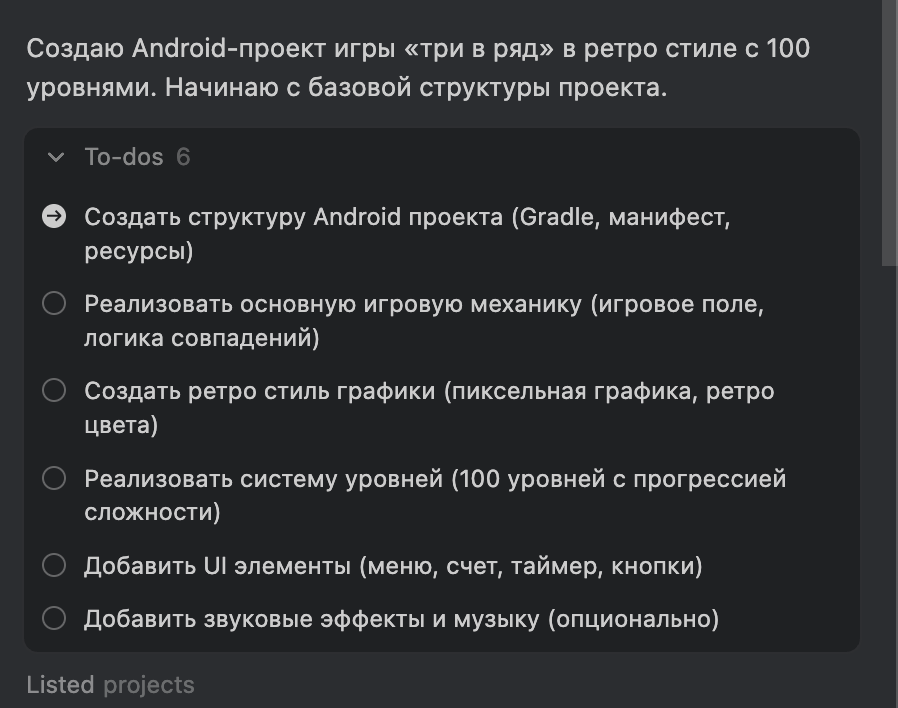 Простой промпт: Напиши игру три в ряд, в ретро стиле. Должно быть 100 уровней от легких, до почти непроходимых без толики удачи.