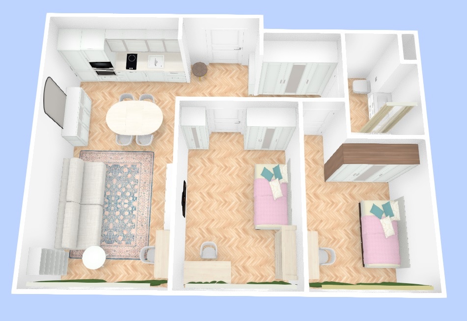 А для полного функционала — PRO-версия с тремя тарифами: Персональный, Расширенный и Собственный. Мы сами пользуемся именно PRO-версией с тарифом «Персональный» — его возможностей для домашних проектов более чем достаточно 💪 Ниже будет 3D визуализация дизайна интерьера, который спроектировала моя супруга для нашей 2х комнатной квартиры в Краснодаре. 👇 И это ещё не всё! Программа позволяет детально проработать инженерию: 📍 спроектировать расположение розеток и выключателей