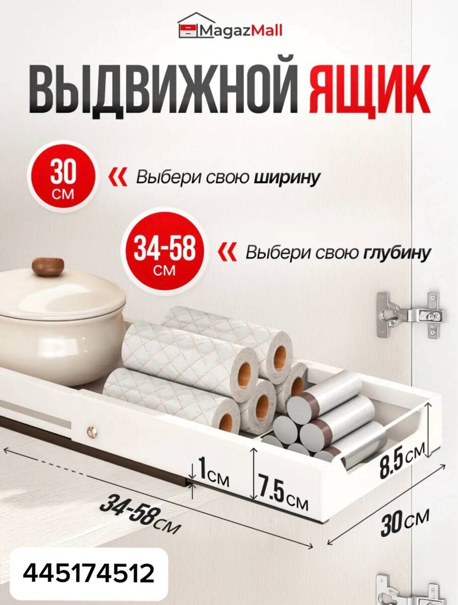 Функциональный и незаметный герой порядка. Этот выдвижной ящик предназначен для установки внутрь шкафа или тумбы и помогает грамотно организовать хранение мелочей: от кухонных принадлежностей до бытовых запасов.