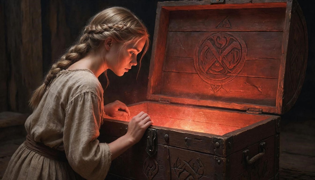 Сундук в углу вдруг осветился изнутри. Сквозь щели в досках, сквозь звериную пасть на крышке пробивалось мягкое, манящее красноватое сияние. И страх Яромилы вдруг совсем прошёл.