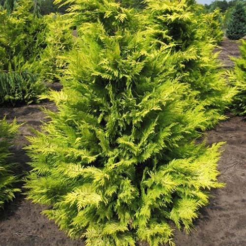 За последние годы резко возросла востребованность хвойных растений при озеленении частных территорий различного типа. Среди множества представителей этой группы особенно выделяются кипарисовики, среди которых лидирует сорт «Голден Уандер» («Golden Wonder»). Новый сорт был выведен голландским селекционером Николасом Теодором Босманном в городе Боскоп в 1955 году. Благодаря своему привлекательному внешнему виду и неприхотливости растение быстро завоевало любовь садоводов по всему миру. Сегодня существует много аналогичных сортов, однако «Голден Уандер» остается одним из лидеров популярности. «Голден Уандер» представляет собой изящное хвойное дерево высотой около 7 метров, с диаметром ствола примерно 3 метра. Структура кроны отличается симметричностью и правильной конусообразной формой. Ветви расположены густо и равномерно. Особенность сорта заключается в уникальной окраске хвои. Молодые иголки имеют яркий золотистый оттенок, постепенно переходящий в насыщенный лимонно-желтый цвет. Цвет х