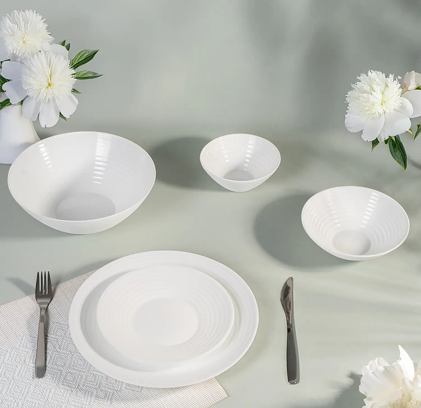 На фоне предыдущей посуды эти салатники мне показались классными, хотя я и не люблю опаловое стекло. Объёмы -300 мл и 430 мл.