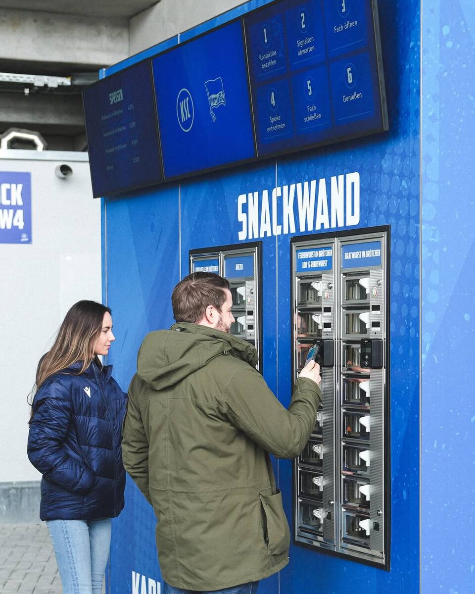 Можно быстро заказать, оплатить и получить немецкую колбаску и крендели. Аппарату дали 3 месяца испытательного срока. Что здесь: аппараты/зоны самообслуживания с едой, напитками и даже мерчом все чаще появляются на стадионах зарубежом. У нас такие аппараты стоят повсюду, но не на матчах, где к кассам все еще толпятся очереди. Нужны ли такие решения в нашем спорте? 💯 – да 🌭 – нужно тестить 👀 – можно, а зачем? ПРО маркетинг в спорте
