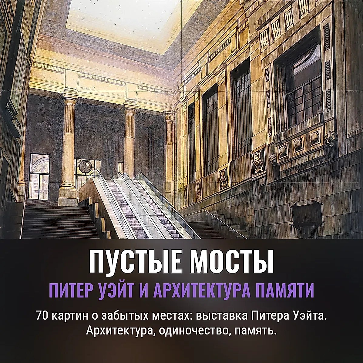 памяти. Да и её, как известно, иногда хватает только на то, чтобы вспомнить, где забыли зонт. Художник ловко работает с фотографиями и зарисовками, словно собирает пазл забытого города. ПВХ — его холст, ирония — его кисть: места, где всегда проходят люди, обрели девственную пустоту. Всё это вызывает не легкое уныние, а скорее желание задуматься: что останется от нашей суеты, когда из неё уберут людской фон? Выставка Уэйта напоминает, что прошлое никуда не делось — оно просто ждет нас в безлюдных залах и туннелях. 🖼️🎨 Узнать подробности смотри ещё