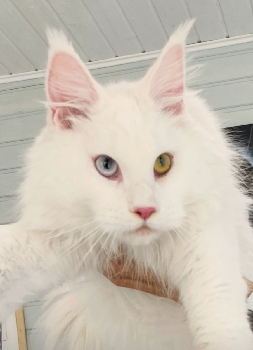 Ответ: Это связано с отсутствием меланина — пигмента, который окрашивает шерсть и радужную оболочку глаз. Голубой цвет — это не пигмент, а результат рассеяния света в практически прозрачной строме радужки.