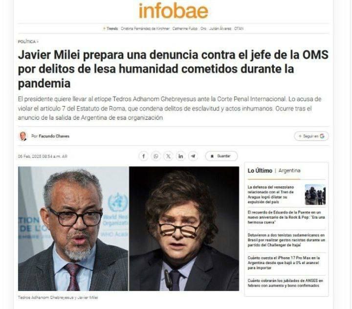 Милей, подаёт в суд на педофила главу ВОЗ за аферу в истории.