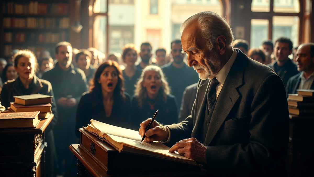Кофейня в Чукурджуме жила своей жизнью — шумной, насыщенной, уже не столько ностальгической, сколько деловой. После речи Лейлы и успеха «Сети Почвы» она стала штаб-квартирой движения, местом паломничества активистов, журналистов, учёных. «Книга Наследника» лежала теперь не на полке, а на специальном пюпитре, и её страницы быстро заполнялись записями со всего мира: «Мы посадили наш дуб в память о бабушке в Лионе», «Наша школьная команда создала свой «сад памяти» в Кейптауне, спасибо за идею!». Элиф зашла сюда редко. Её место было в поле. Но сегодня её вызвала Лейла — не по делу, а «просто так». Они сидели за угловым столиком, пили кофе, смотрели на суету. И тогда Элиф увидела его. Очень старый мужчина. Ему, наверное, было за сто. Он медленно, опираясь на трость, пересёк зал. На нём был старомодный, но безупречно чистый костюм. Он шёл с такой целеустремлённостью, что даже шумные группы студентов инстинктивно расступились. Он подошёл к пюпитру с Книгой. Лейла замерла, чашка застыла в возд