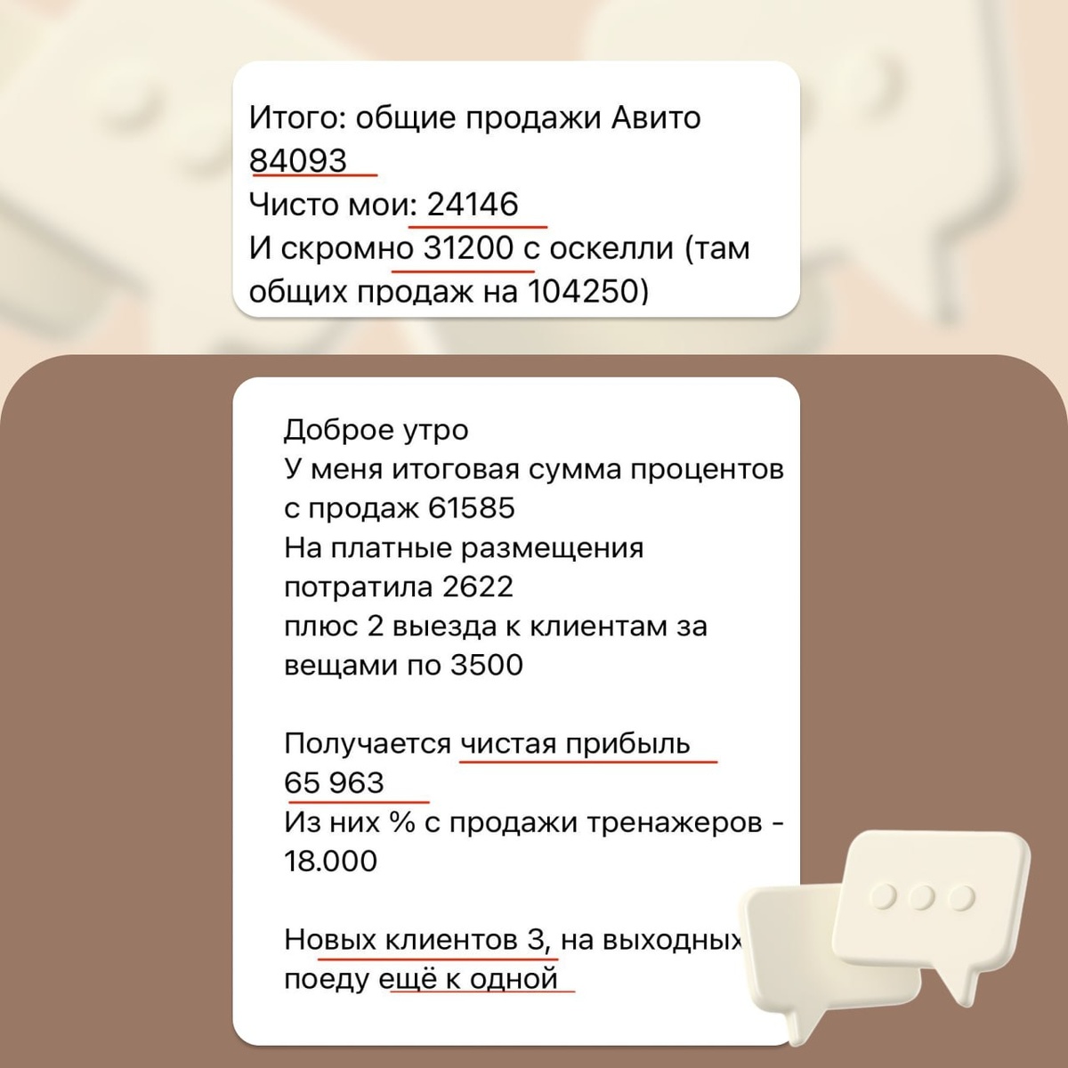 Девчонки в чате выпускников поделились своими цифрами 1️⃣ Общая сумма продаж за месяц - 188 343 руб Чистый доход реселлера - 55346 руб Как видите, продавать можно не только на Авито, особенно если есть брендовые вещи 2️⃣ Общая сумма продаж - чуть больше 200 тыс руб Чистый доход реселлера - 65963 руб И можно не только продавать, а еще выезжать к клиентам, что оплачивается отдельно. И это приятная прибавка к продажам Я чувствую гордость - и за девочек, и за то, что ресейл становится все более востребованным и прибыльным делом А вы что скажете?