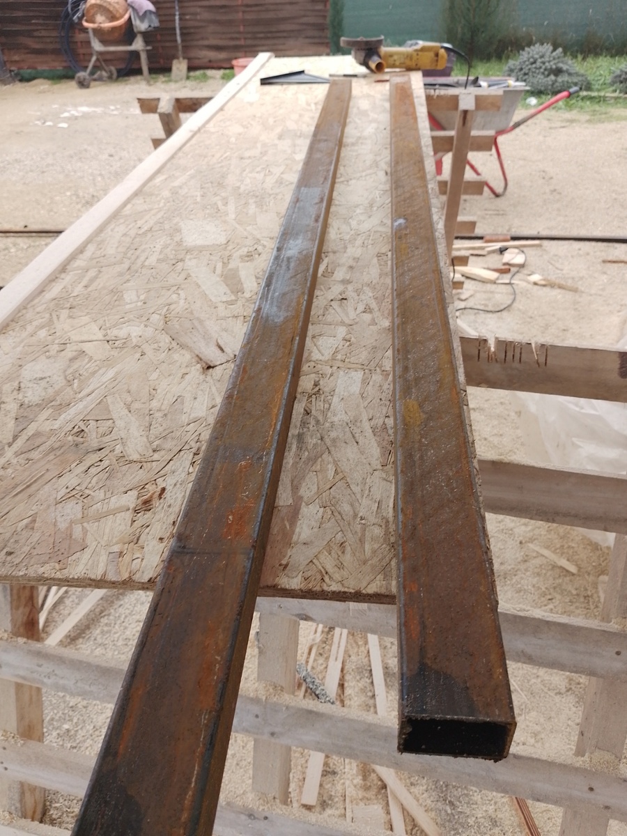 Здравствуйте наше вам! Пока в бане что то там сохнет, что то еще готовится. начали искать мебель в комнату отдыха в нашей Крымской бане. С лавками креслами, стульями определились, а вот со столом пока нет. Что то слишком дорого, что хлипкое, что то полностью из ДСП, или по размерам не подходит. Решил сделать сам простой стол из металла и дерева. На подстолье купили профильную, тонкую трубу, шестьдесят на сорок. На столешницу, на маркетплейсе щит из натуральной березы, размеров шестьсот на тысячу двести. Цена щита, клееного на маркетплейсе тысячу триста, цена четырех метров трубы в районе тысячи рублей. Немного работы угольником, болгаркой и сварочным аппаратом, и подстолье готово. Покрасил краской черной по ржавчине, с молотковым эффектом. Вечером начал, вечером и закончил, покрасил. С утра осталось только немного еще подпилить, проверить размер, ну и в принципе можно приступать к сборке стола, теоретически. Из остатков бруска обрешетки сделал укрепляющие бруски, прикрутил