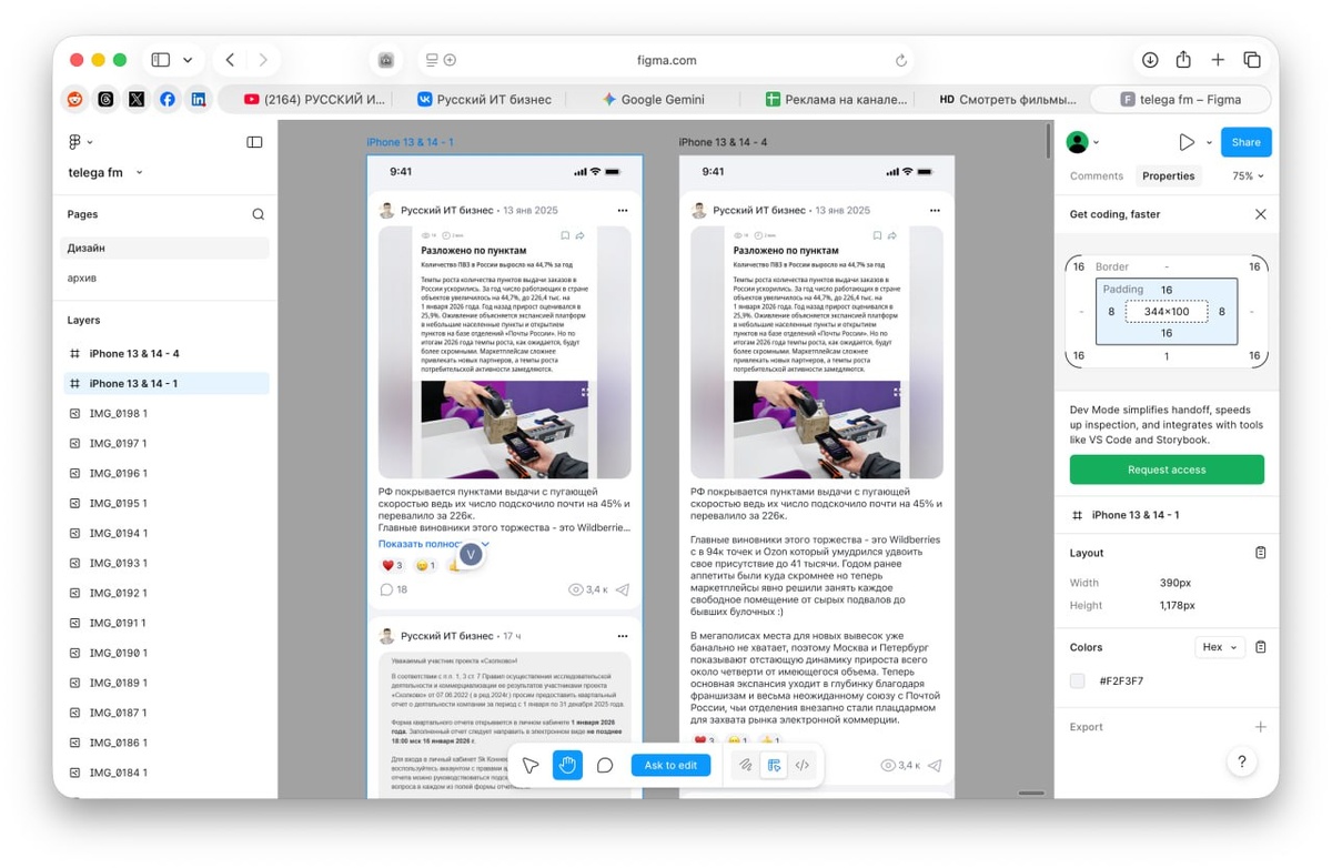 fm. Сам проект уже работает, там два канала (кстати, если хотите - подключайтесь, бесплатно же). Попросил дизайнера воодушевиться топовыми проектами, типа Реддит, Хабр, Пикабу и т.п. и сделать красоту нам. Напомню, это наш сайд- проект, единая лента всех постово по интересам из множества каналов. Алгоритм (в будущем) будет подбирать то, что интересно вам... Такой себе Телеграм- Тикток :) p.s. если что - это еще альфа- версия, не судите строго Русский ИТ бизнес