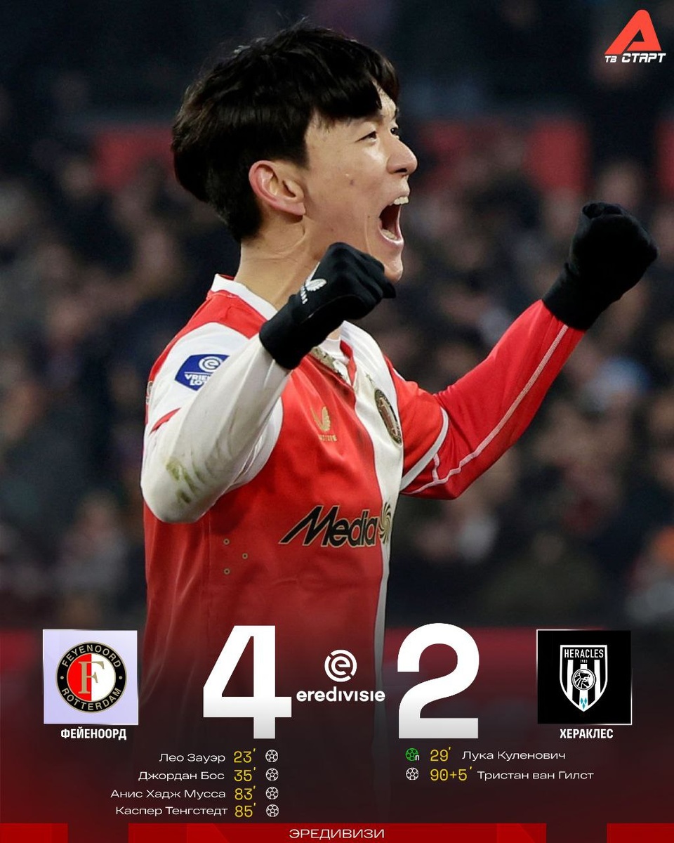 »! Две победы у роттердамцев на этой неделе, команда ван Перси набрала ход. 4:2 по итогу, отдельно отметим два результативных ассиста экс-полузащитника казанского «Рубина» Хван Ин Бома. Смотрите Эредивизи на телеканалах «Старт» и платформе TVSTART.RU 🖥 Подписывайся на ТВ СТАРТ в MAX📲