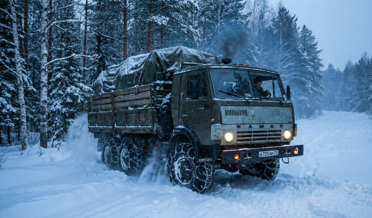 Его большие руки, огрубевшие от многолетней возни с мазутом, соляркой и холодной сталью, привычно лежали на потертой оплетке. Внутри кабины тяжелого иностранного тягача было уютно и тепло: гудела мощная печка, тихо бормотало радио, ловя обрывки волн, пахло крепким кофе и ароматизатором «Елочка». Но Виктор, водитель с тридцатилетним стажем, знал: это тепло — лишь тонкая, хрупкая пленка, иллюзия жизни посреди ледяной пустыни.