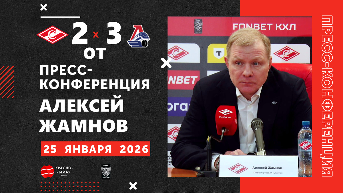 Алексей Жамнов после матча «Спартак» 2:3 ОТ «Локомотив» ответил на вопросы представителей СМИ. 25 января 2026 года.