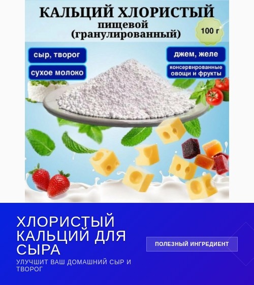 Если вы увлекаетесь домашним сыроделием или только начинаете свой путь в этом увлекательном мире, то наверняка сталкивались с таким термином, как "хлористый кальций" или "кальций хлористый". Этот ингредиент может показаться загадочным, но на самом деле он играет ключевую роль в получении качественного и вкусного сыра. Давайте разберемся, что это такое, зачем он нужен и как его правильно использовать.