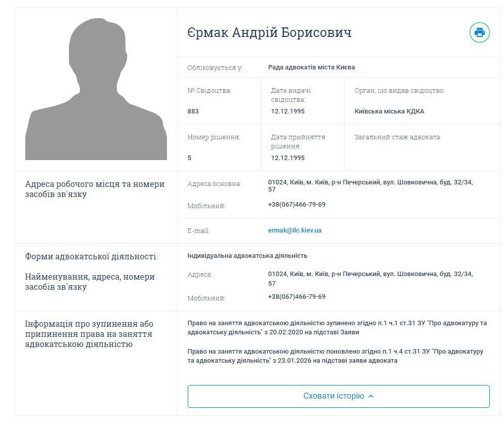 После скандального увольнения Ермак решил возобновить адвокатскую деятельность