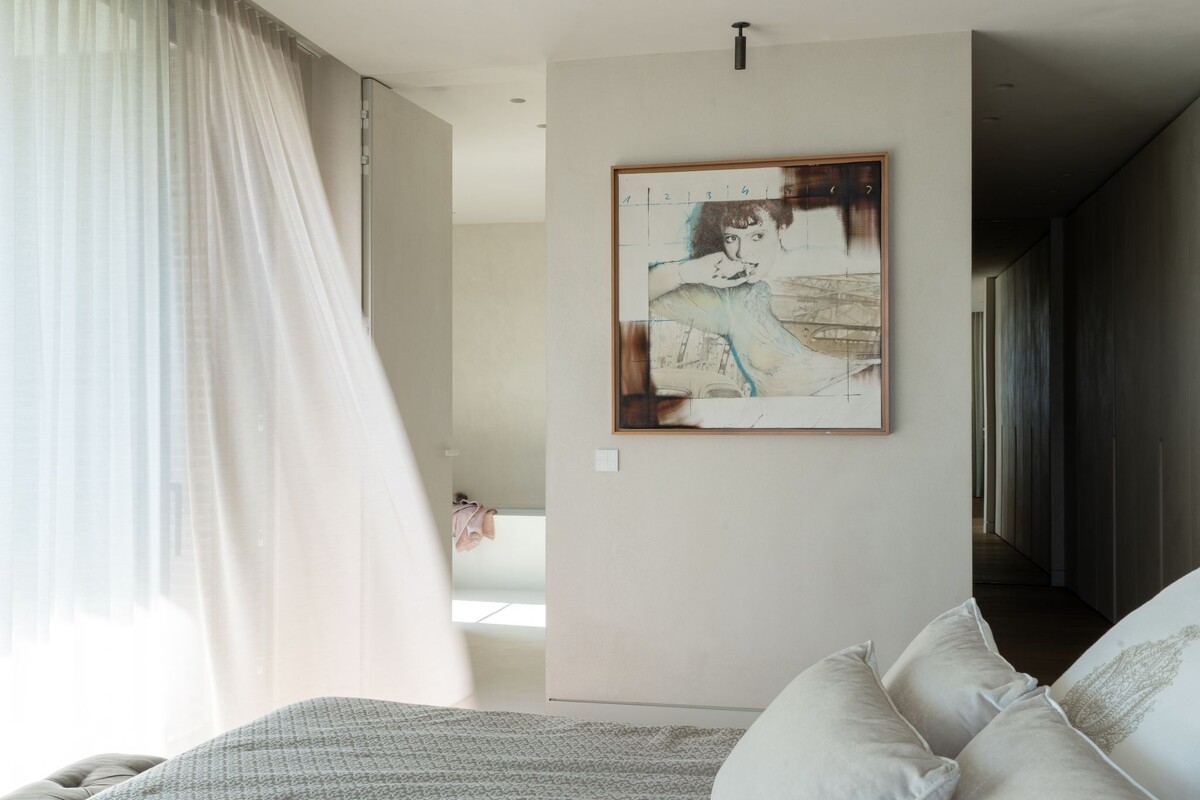 В современном интерьере все чаще ценится не декоративная перегруженность, а цельность пространства. Когда нет резких переходов между материалами, когда поверхности логично продолжают друг друга, интерьер воспринимается спокойным, выверенным и по-настоящему комфортным для жизни. Именно такой подход был реализован в этой квартире. На фотографиях хорошо видно ключевую идею проекта — полное визуальное единство. Стены, потолки и даже двери отделаны декоративной штукатуркой, изготовленной на заказ. Это не просто эстетическое решение, а продуманный дизайнерский прием. Однородная фактура без лишних швов и стыков визуально расширяет пространство, делает его цельным и собранным. Свет мягко распределяется по поверхностям, подчеркивая рельеф и глубину материала. Отдельного внимания заслуживает кухня. Здесь использовано микроцементное покрытие, нанесенное не только на рабочие столешницы, но и на фасады шкафов. Такой подход все чаще применяется в современных интерьерах, и неслучайно. Микроцемент обр
