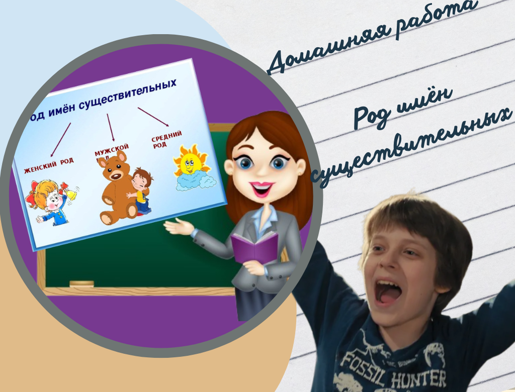 Все имена существительные можно разделить по родам. Всего в русском языке три рода: женский, мужской, средний. Каждое (!) имя существительное имеет свой род. И если по числам слова могут изменяться, то по родам – нет. Этот признак является постоянным. Чтобы определить род имени существительного, его следует заменить подходящим местоимением. Местоимение она заменяет существительные женского рода, он – мужского, оно – среднего.