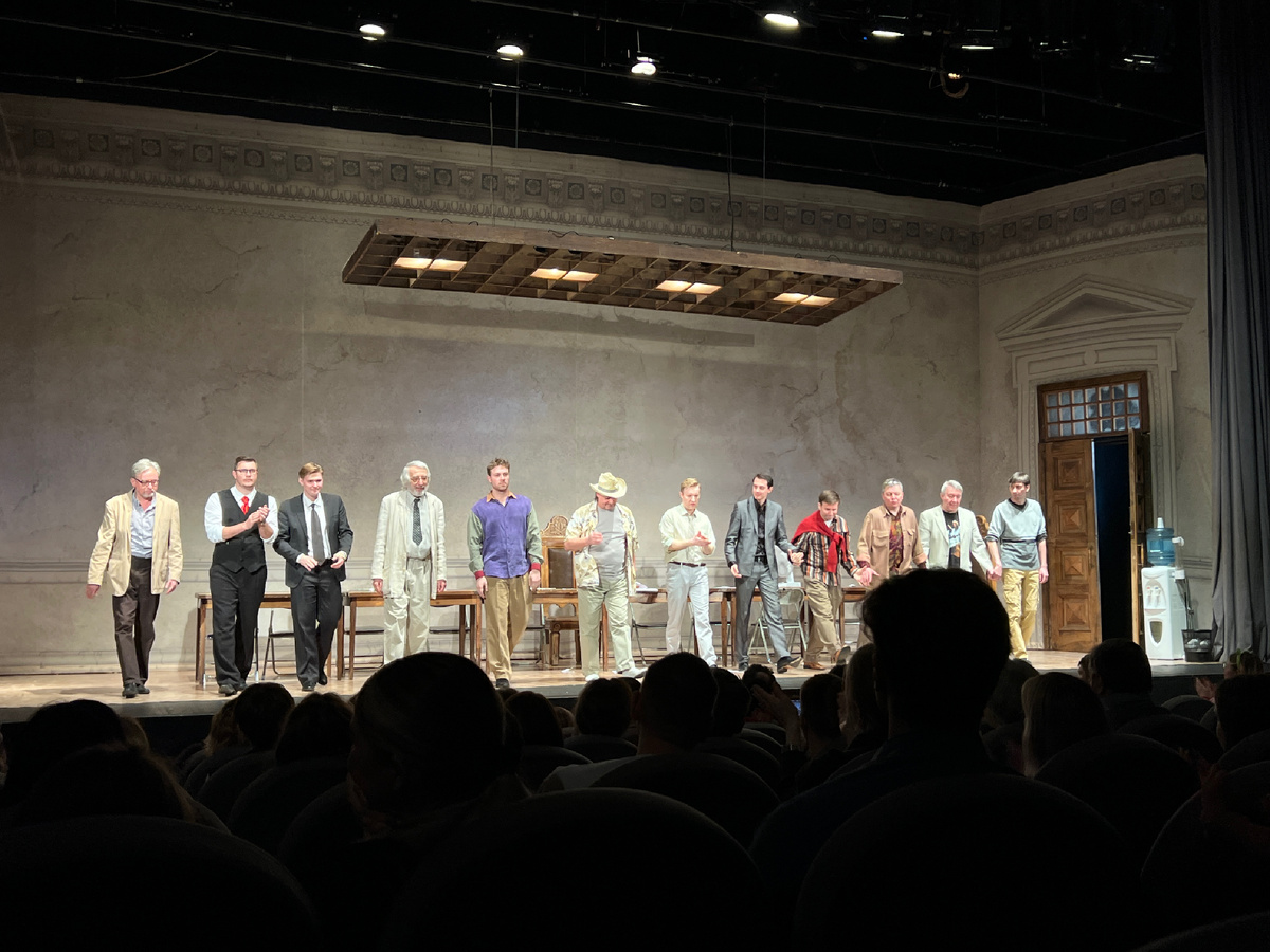 Я читала пьесу, смотрела два американских фильма, один наш, а в театре не видела. Мне казалось, что зритель, «запертый» в одной комнате с 12 присяжными, тоже потенциально станет разгневанным. Мне думалось, что для театральной сцены не хватит действия и динамики. То ли дело кино.. детективная история, по которой тебя проводят режиссерской идеей и операторской камерой, показывая яркое, акцентное, фокусируя на деталях и крупных планах. Актерам театра удалось прожить эту историю очень взаправду, да еще и вовлечь зрительный зал в решение морально-этической дилеммы, на кону которой жизнь человека.