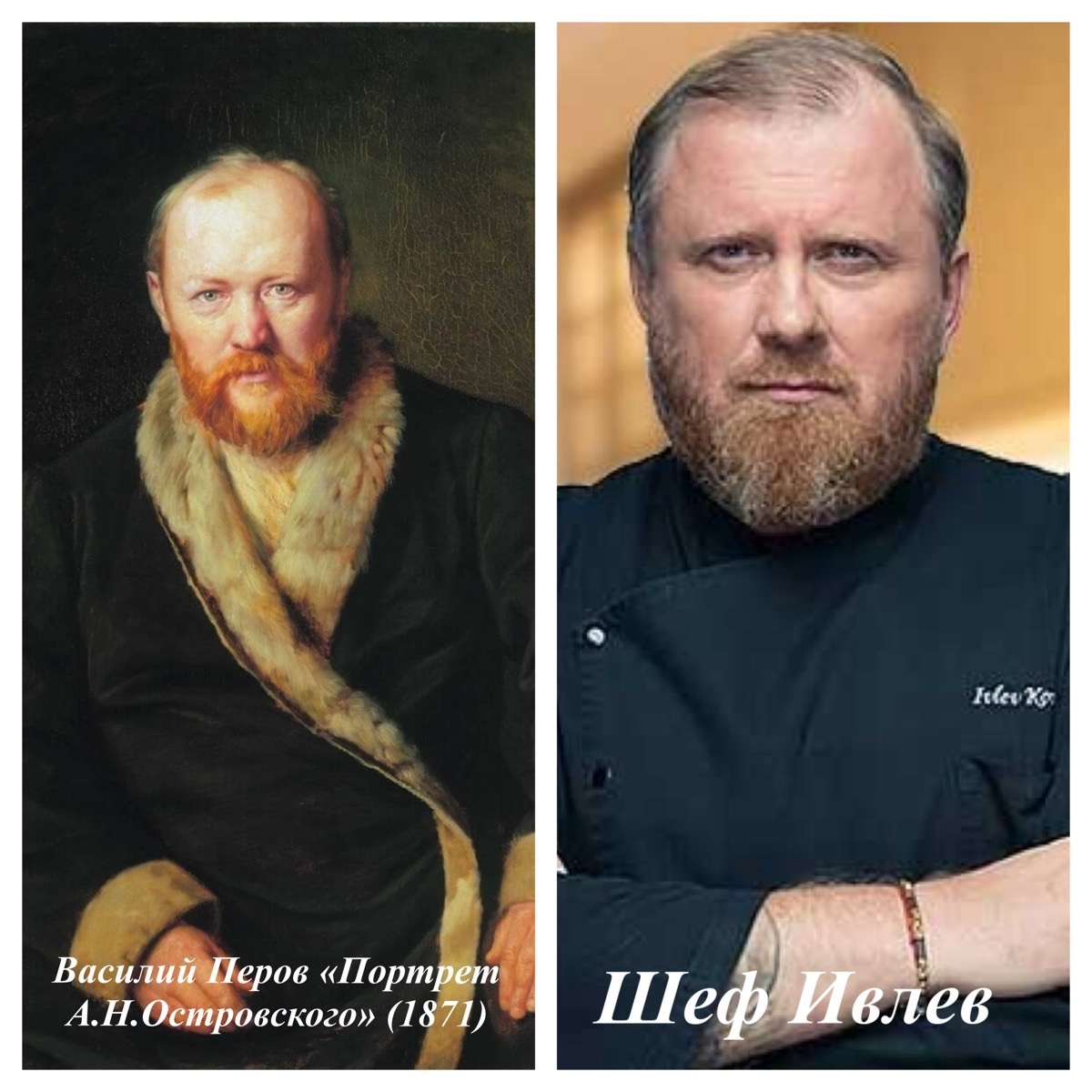 Кулинарный гений или театральный? Оказывается, у популярного шефа Константина Ивлева есть практически идеальный двойник из XIX столетия. Им является не кто иной, как великий русский драматург Александр Николаевич Островский. Сходство особенно бросается в глаза, если сравнить фотографии Ивлева со знаменитым портретом работы Василия Перова, написанным в 1871 году.