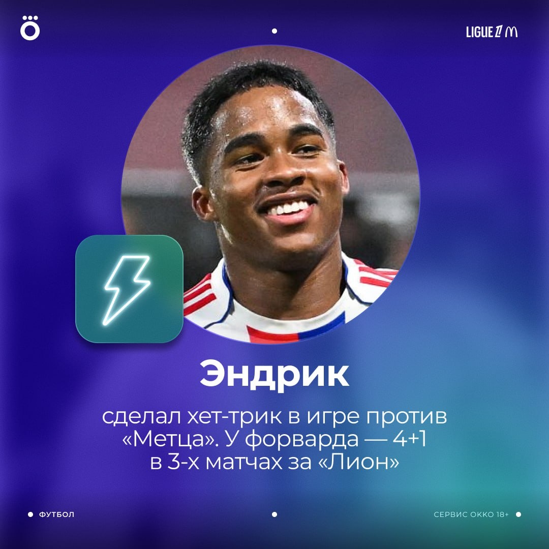 Эндрик воспрял после переезда в Лион — юный бразилец набрал 4+1 в 3-х матчах 👏🏻 Сегодня ушел с хет-триком. Красавчик! ❤️ 😃 Смотри Okko прямо сейчас!