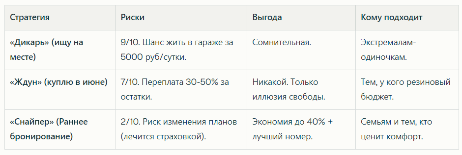 Давайте честно: планировать отпуск в январе на август — это скучно. Хочется жить моментом, быть спонтанным. Но проблема в том, что туристический рынок Сочи и Абхазии сейчас работает по тем же принципам, что и биржа или такси в дождь. Это называется динамическое ценообразование. Робот видит спрос — робот поднимает цену. Ему всё равно, что вы «всегда ездили в августе за 50 тысяч». В 2026 году этот номер уже не пройдет. Я работаю с аналитикой туроператоров и вижу графики: кривая цен ползет вверх не плавно, а скачками. Сегодня я расскажу, как использовать эти алгоритмы в свою пользу, а не быть их жертвой. В Telegram делюсь тем, о чем не пишу здесь. Секретные лайфхаки и горящие предложения. Больше полезного о путешествиях. Подписывайтесь → t.me/manitur_tg Многие думают, что раннее бронирование — это маркетинговая уловка, чтобы забрать ваши деньги сейчас. Отчасти да, отельерам нужны оборотные средства. Но взамен они дают реальный дисконт. Вот сухая математика на примере цен на отдых в Абхази