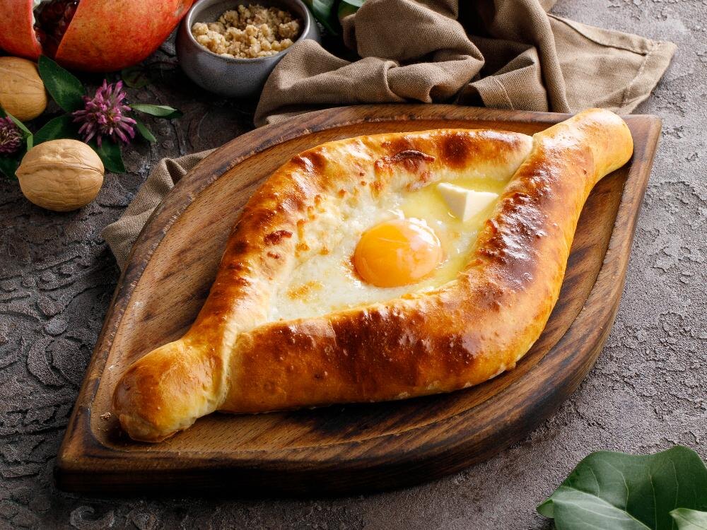 Хачапури — одно из самых узнаваемых блюд грузинской кухни, символ тепла, щедрости и домашнего уюта. В ресторанах Хачо и Пури его готовят в настоящей дровяной печи по старинным рецептам, что придает корочке особую румяность и аромат дыма. В меню представлено более 12 разновидностей — от классических до авторских интерпретаций. Это позволяет каждому гостю найти свой любимый вкус, будь то традиционный сырный вариант или необычное сочетание с современными акцентами. Начнем с основ — классики, без которой невозможно представить грузинский стол. Аджарский хачапури — лодочка из теста с начинкой из сулугуни и имеретинского сыра, сверху яйцо и кусочек сливочного масла. После выпечки желток аккуратно размешивают с горячим сыром — получается кремовая, тягучая масса с насыщенным вкусом. Это блюдо идеально для тех, кто любит яркие, сливочные ощущения и традиционную подачу. Имеретинский хачапури — круглый закрытый пирог, полностью заполненный смесью имеретинского сыра и сулугуни. Тесто тонкое, хруст