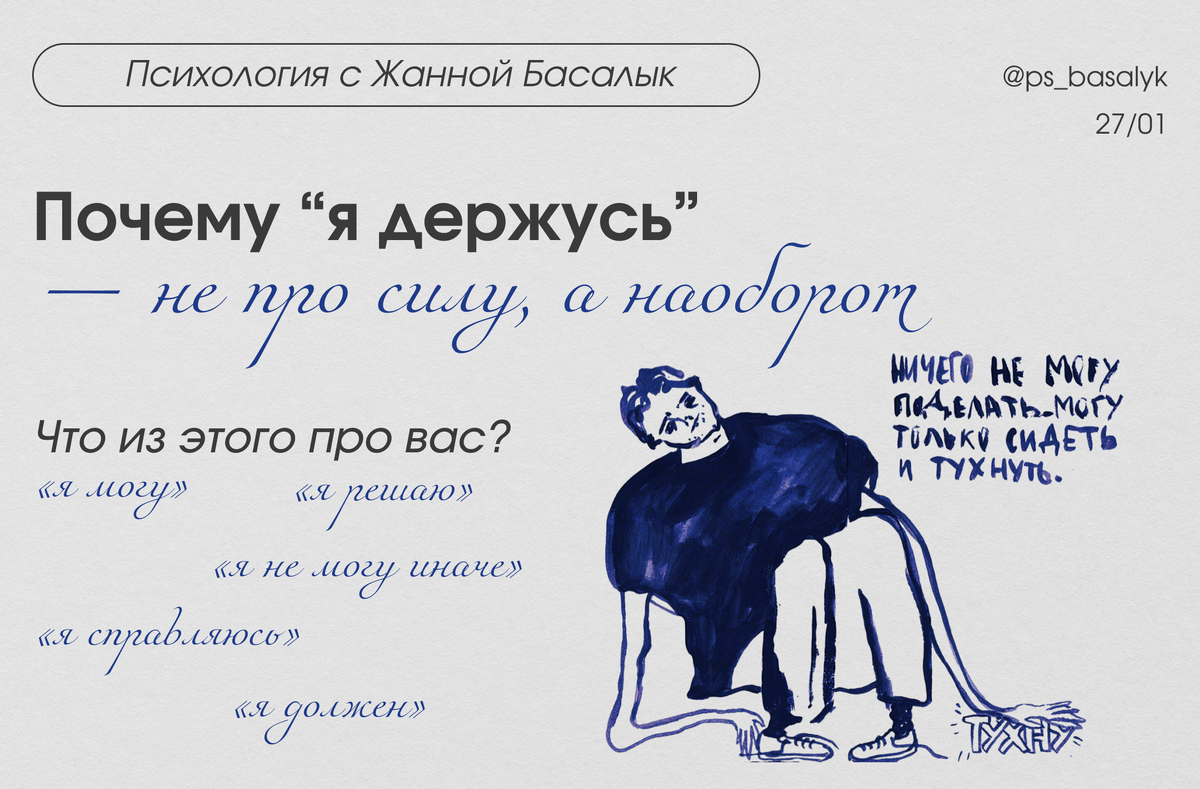 не нужно постоянно удерживать себя. — это когда человек не ломается, а слишком долго не позволяет себе остановиться. Небольшой чек-лист уже есть в моем телеграм канале "Психология с Жанной Басалык". Проверьте себя.