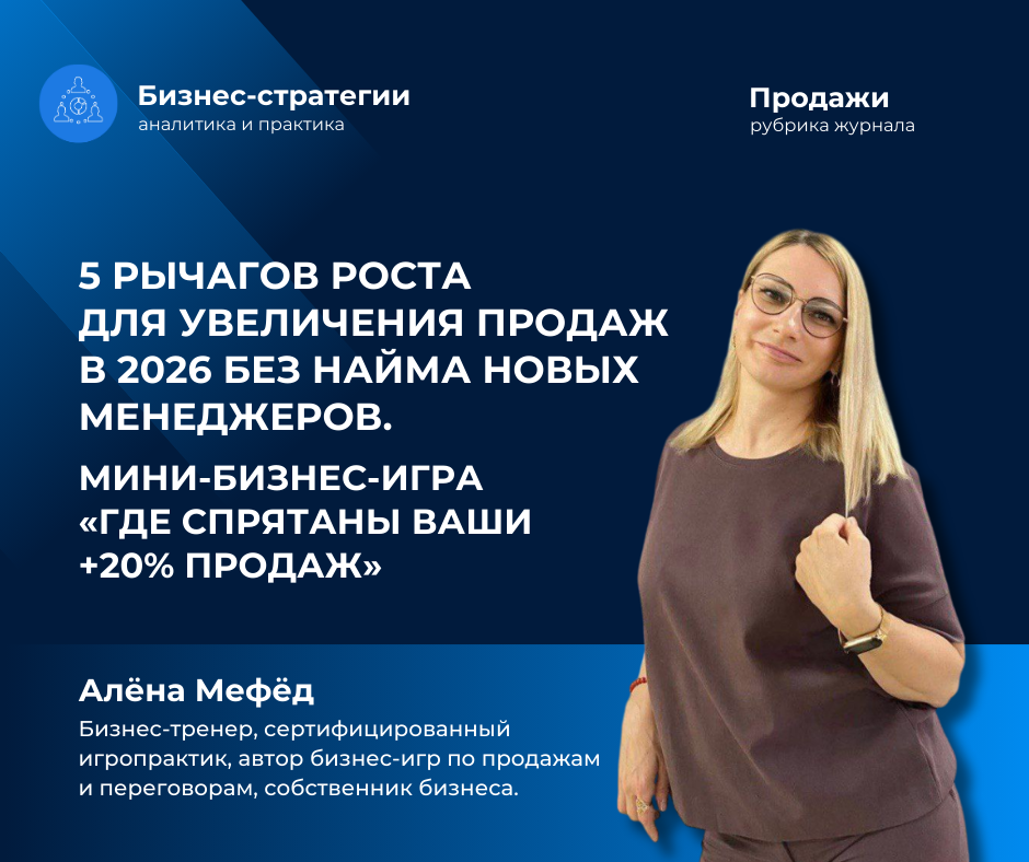 С уважением, автор журнала, Алёна Мефёд – бизнес-тренер, сертифицированный игропрактик, автор бизнес-игр по продажам и переговорам, собственник бизнеса