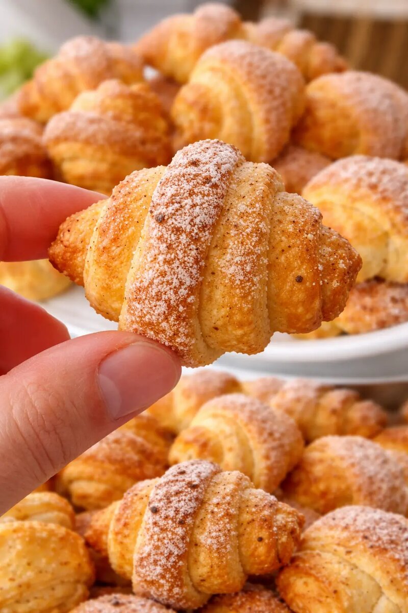 4). Каждую часть теста раскатать в тонкий круг. Посыпать сахаром и маком, прижать посыпку руками. Круг разрезаем на узкие сегменты . Каждый сворачиваем в круассанчик. Сверху посыпаем сахаром ( можно просто окунуть в Сахар ).