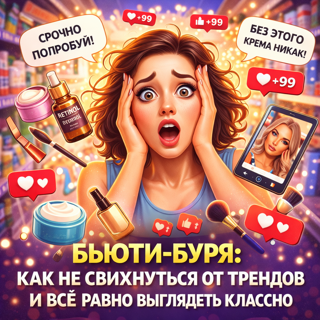 Со всех сторон кричат: "Срочно попробуй!", "Это средство изменит твою кожу!", "Без этого крема ты никогда не будешь выглядеть молодой!". Лента в телефоне не кончается, каждый день появляется новый "обязательный" тренд, а у тебя в голове один вопрос: "Я вообще всё успеваю? Или я уже отстала от жизни?"