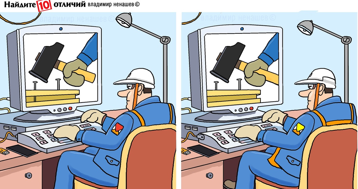 10 отличий. Тест не только на внимание, но и на запоминание. Работа и современные технологии в нашей загадке. Позитив.