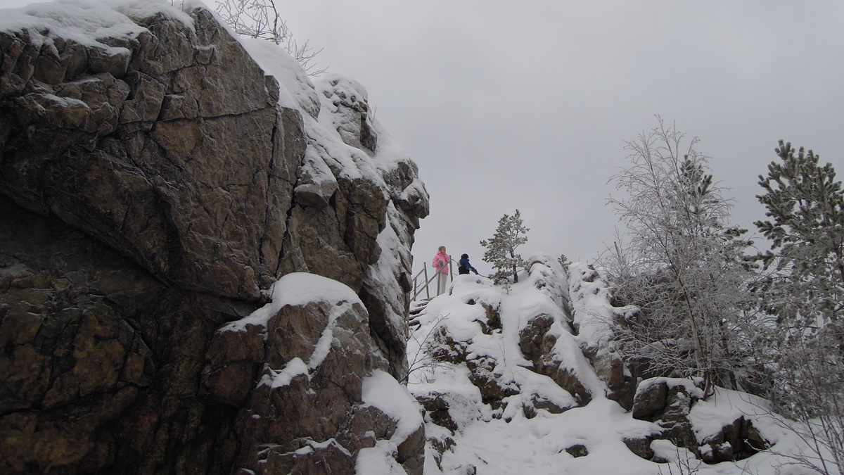 Давно собиралась посетить Азов-гору (56.467434, 60.096281): во-первых, недалеко от Екатеринбурга, во-вторых, название значимое – сказочное :). И каждый раз мне супруг говорил, что гора сложная и он на нее не пойдет, т.к. ему не подняться чисто физически. И я откладывала эту туристическую точку до лучших времен. Но то ли муж разобрался в топографии местности, то ли гора вдруг уменьшилась в размерах :))), но однажды он меня обрадовал тем, что мы вполне способны посетить это место. В интернете подсмотрела, что на Азов-горе некий художник написал картины, посвященные бажовским сказам. После этого не взять с собой внука я не могла. И вот зимним заснеженным утром, 18 декабря 2021 года, мы выехали в Полевской район по направлению горы Азов. Состав путешественников: муж, дочь, сын, внук и я. Забегая вперед, хочу сказать, что никаких картин мы не увидели: может, снегом запорошило, может, просто не нашли нужную скалу. Оказывается, гора-то очень большая! Она представляет собой много вертикальных