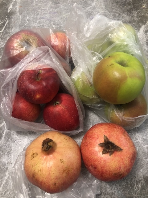 Яблоки и гранат пару штучек.