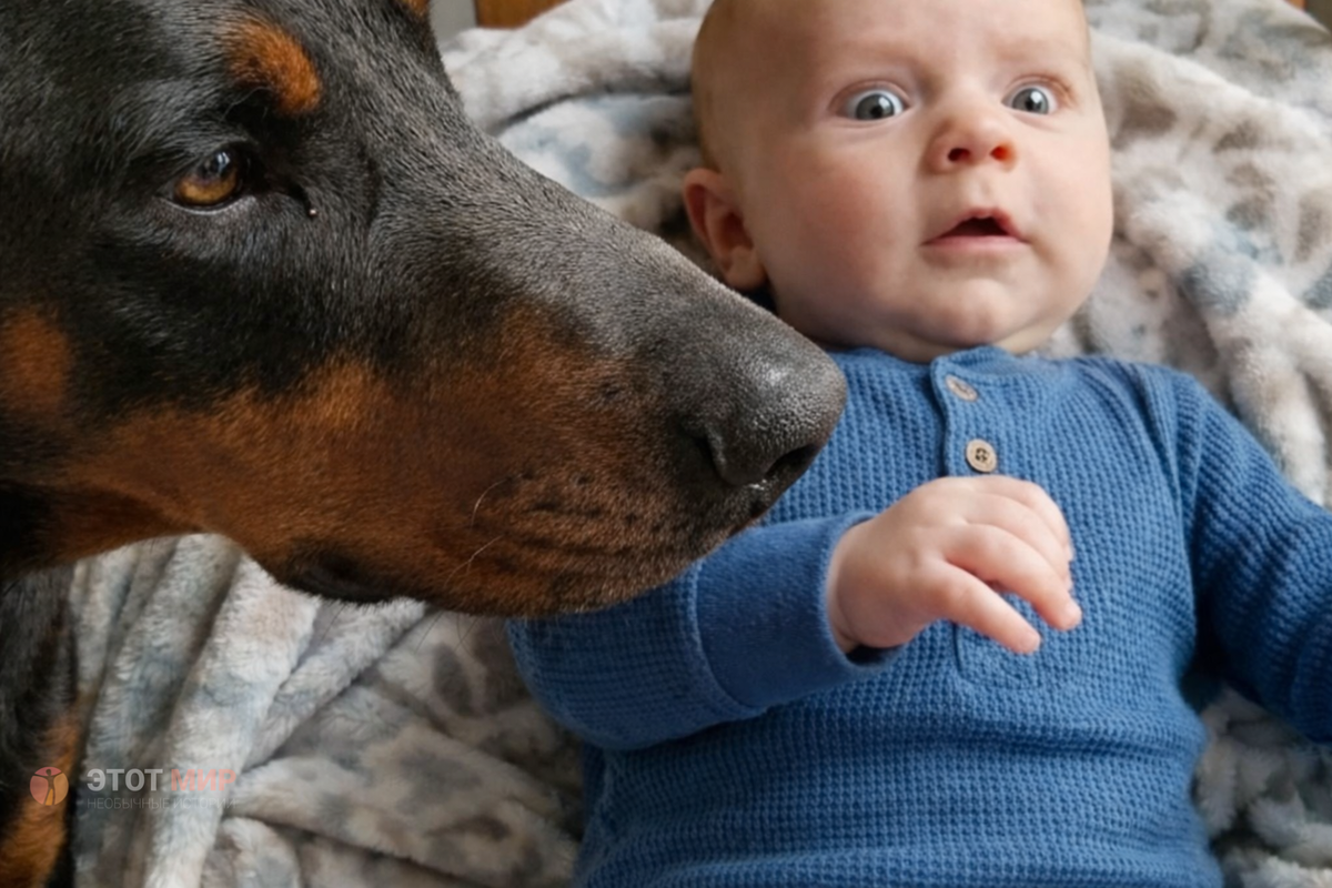 Максим проснулся от звука, который он запомнит навсегда. В тот момент он был уверен: его пёс напал на новорождённого сына. Но в течение следующих шестидесяти секунд его мир перевернётся. А правда заставит его опуститься на колени. Максим проснулся от глухого, тревожного рычания. На секунду не понял, где он и что происходит. Но потом услышал: звук шёл из детской. Он вскочил с кровати. Сердце стучало в горле. Коридор. Дверь. Он распахнул её — и замер. Зевс, их доберман весом почти сорок килограммов, стоял внутри кроватки, прямо над их трёхмесячным сыном Львом. Массивное тело нависало над младенцем. Пёс метался, тыкался мордой в грудь ребёнка и рычал — низко, угрожающе. В лунном свете блеснули зубы. Максим не раздумывал. Он бросился вперёд. В голове вспыхнул худший кошмар отца. Но то, что он узнает через минуту, изменит всё. Максим и Софья спорили из-за Зевса ещё с беременности. Родственники присылали статьи про "опасные породы". Мама Максима говорила: — Доберман — это охранник, а не нянь
