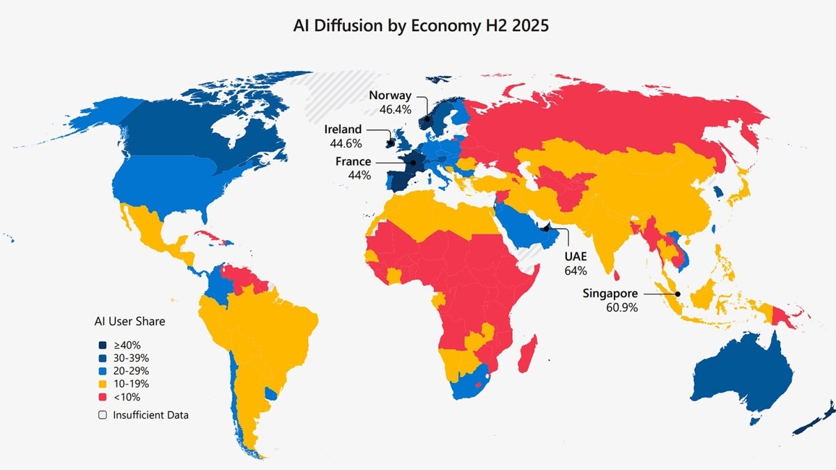 📊 Microsoft составила рейтинг стран по уровню интеграции ИИ в 2025 году