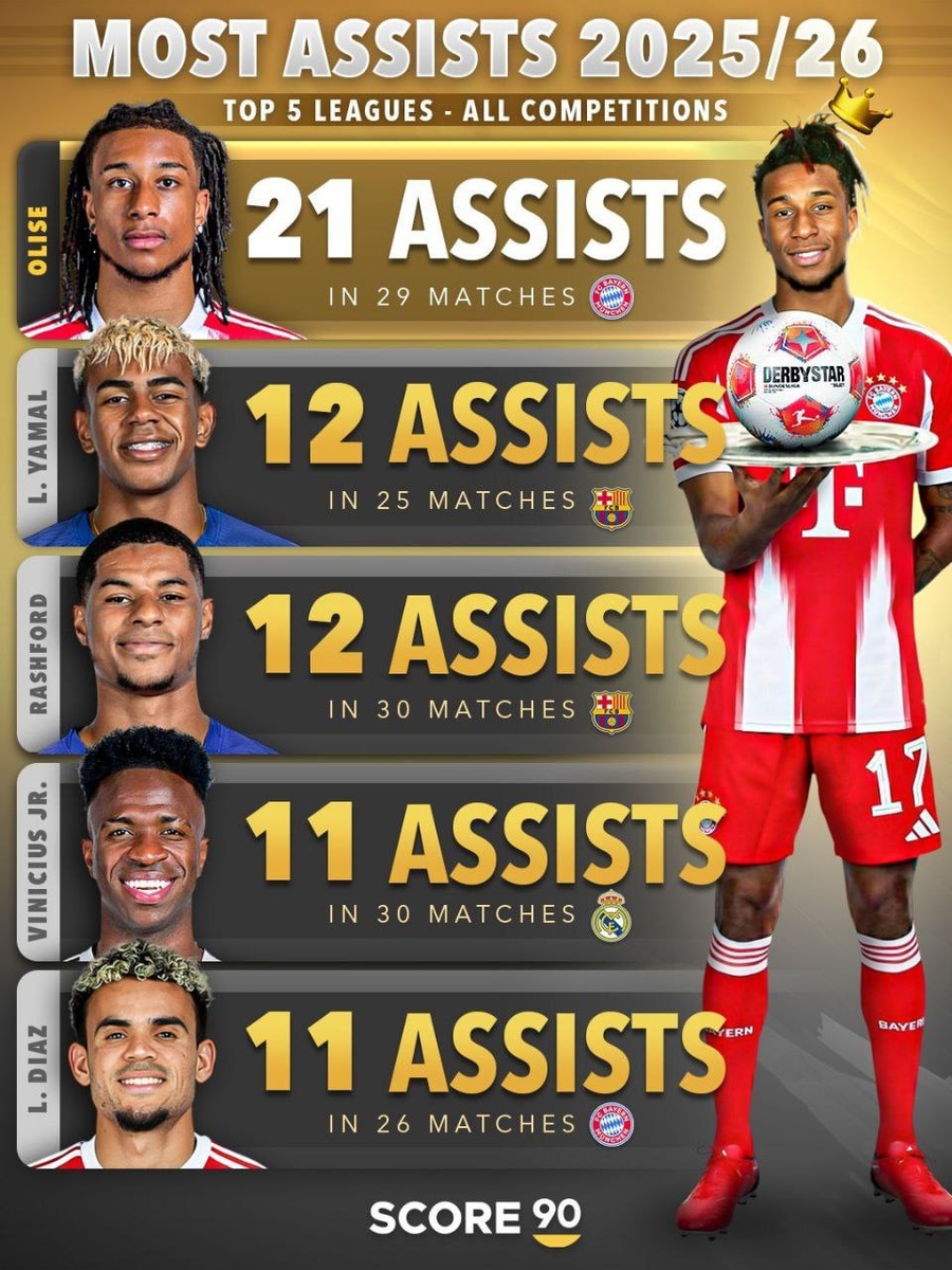 Лучшие ассистенты топ-5 лиг в этом сезоне