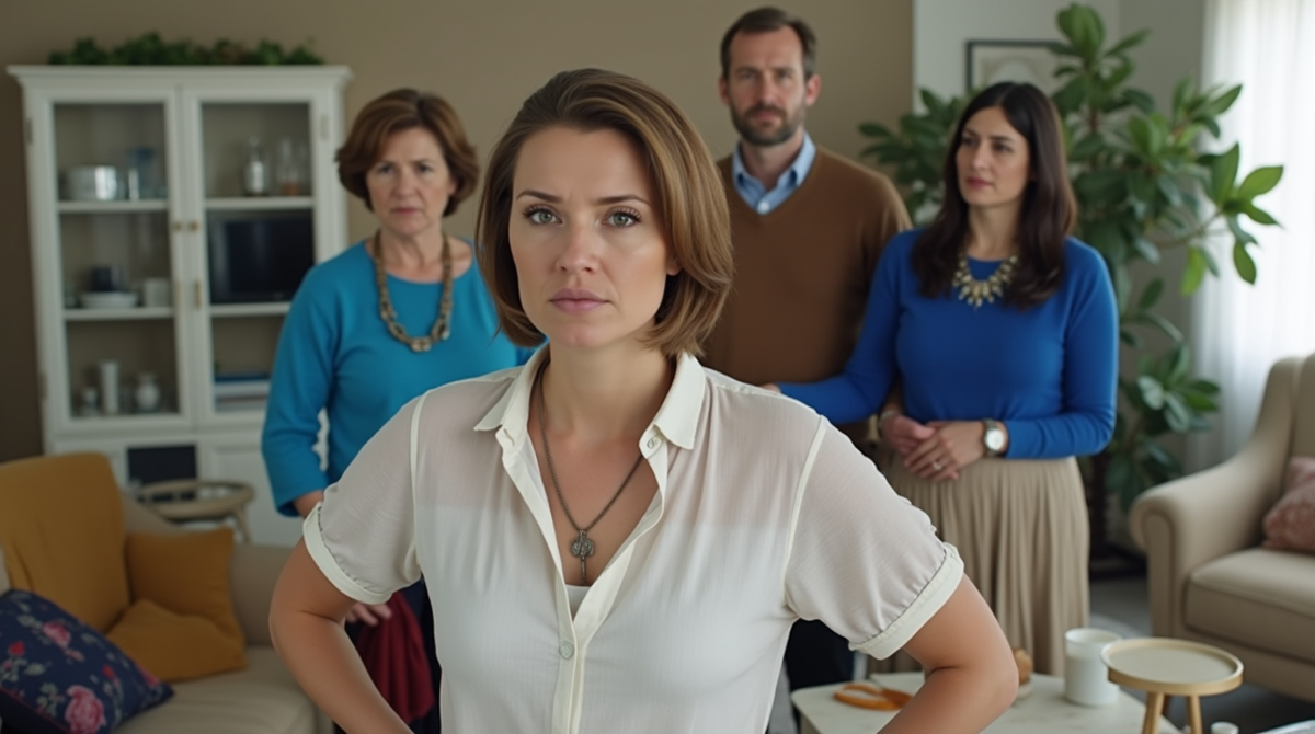 Она вышла на середину комнаты и сказала те самые слова. Громко. Чётко. Без крика, но так, что все замолчали.
