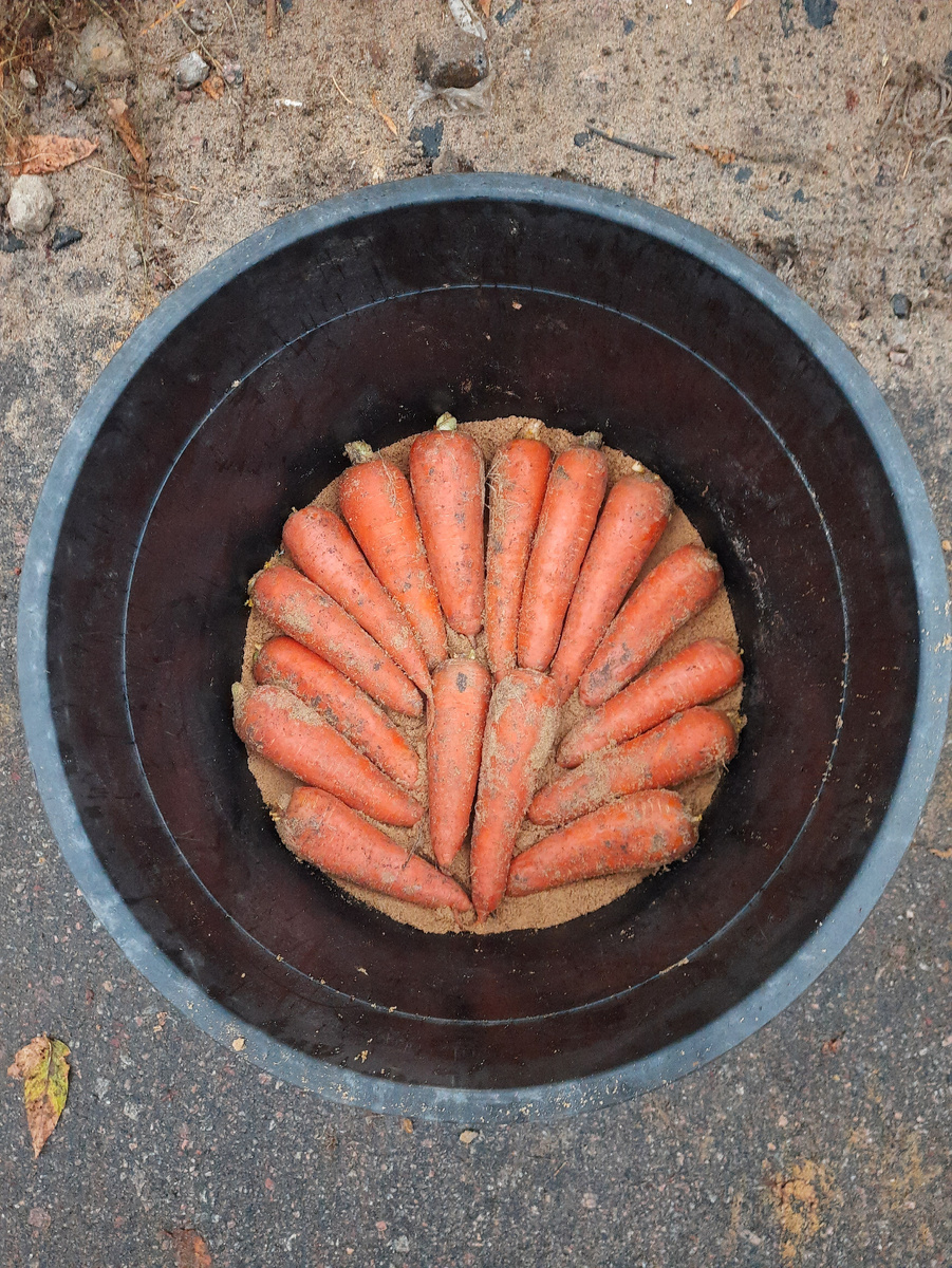 Это позволит исключить загнивание большого количества корнеплодов, даже если в какой -то емкости окажется инфекция и разовьется очаг болезни. Вы быстро это обнаружите и удалив пораженные корнеплоды, остановите развитие болезни. Если компостная куча у вас не правильная (посмотрите на канале ролик про правильную кучу), то пораженную морковь не класть в кучу, а выбрасывать на мусорку.